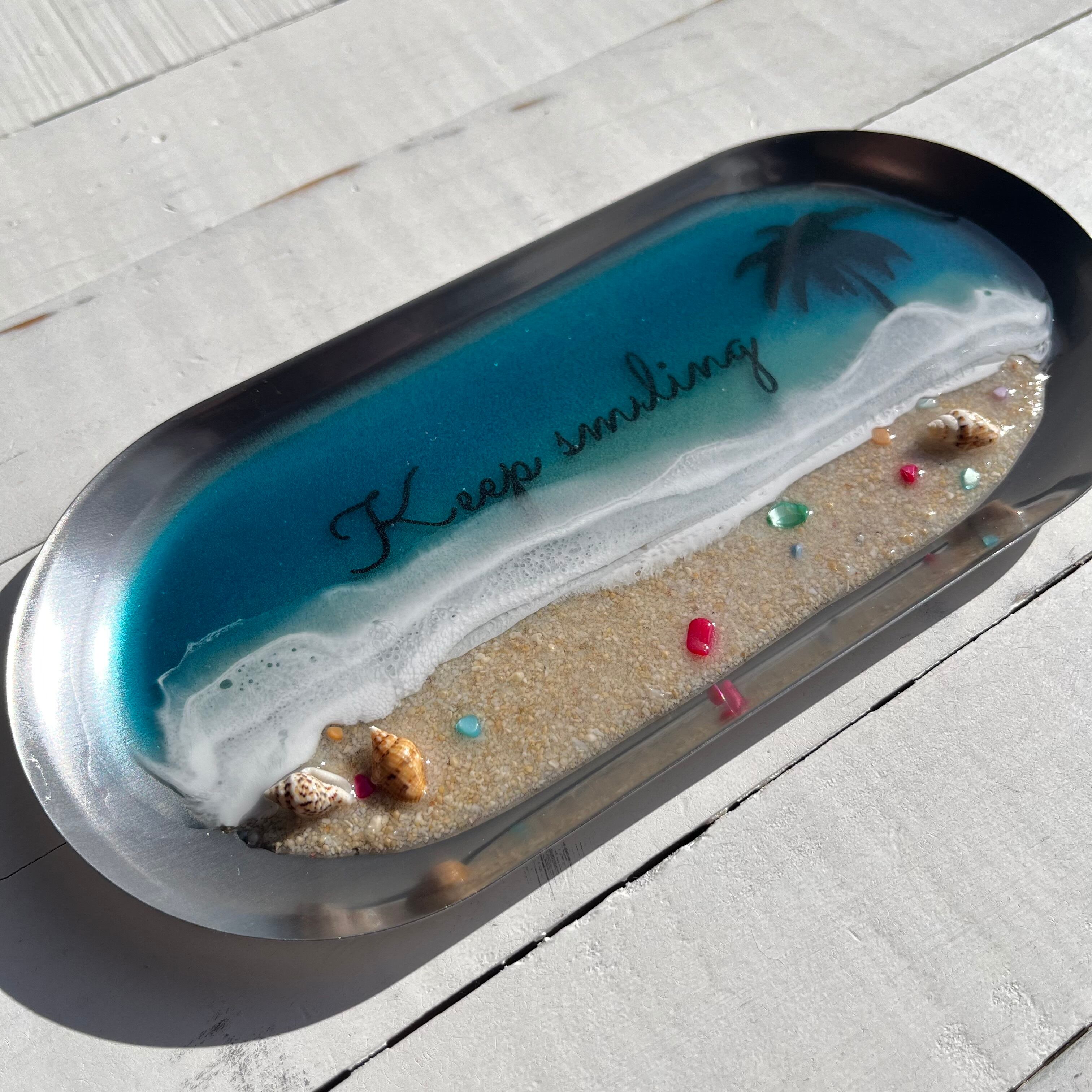 シルバートレイの中にエポキシレジンで海をつくりました( •̤ᴗ•̤ )