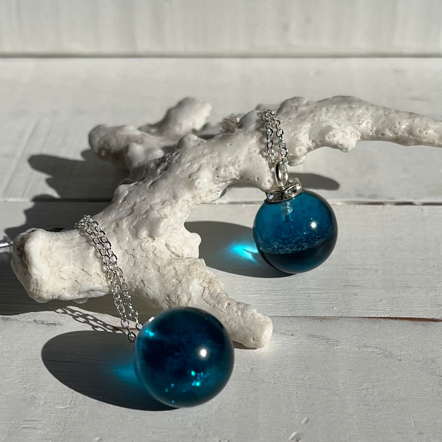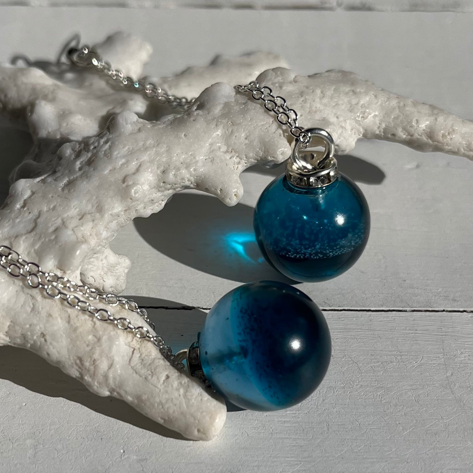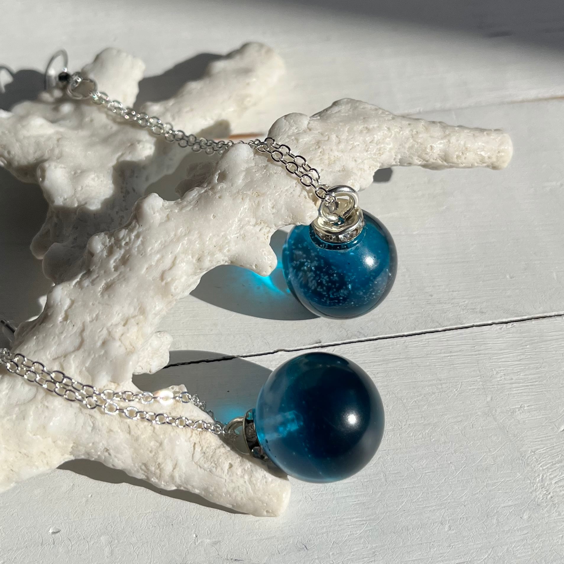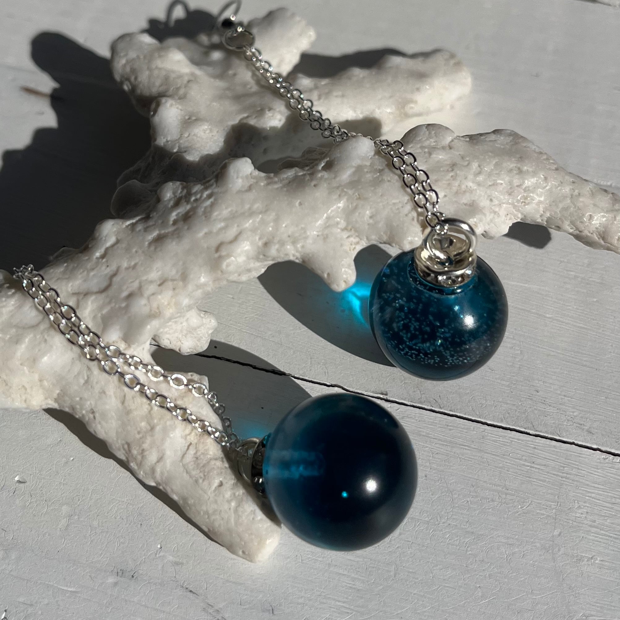 長めのチェーンで揺れるととても素敵な丸い海の玉♡