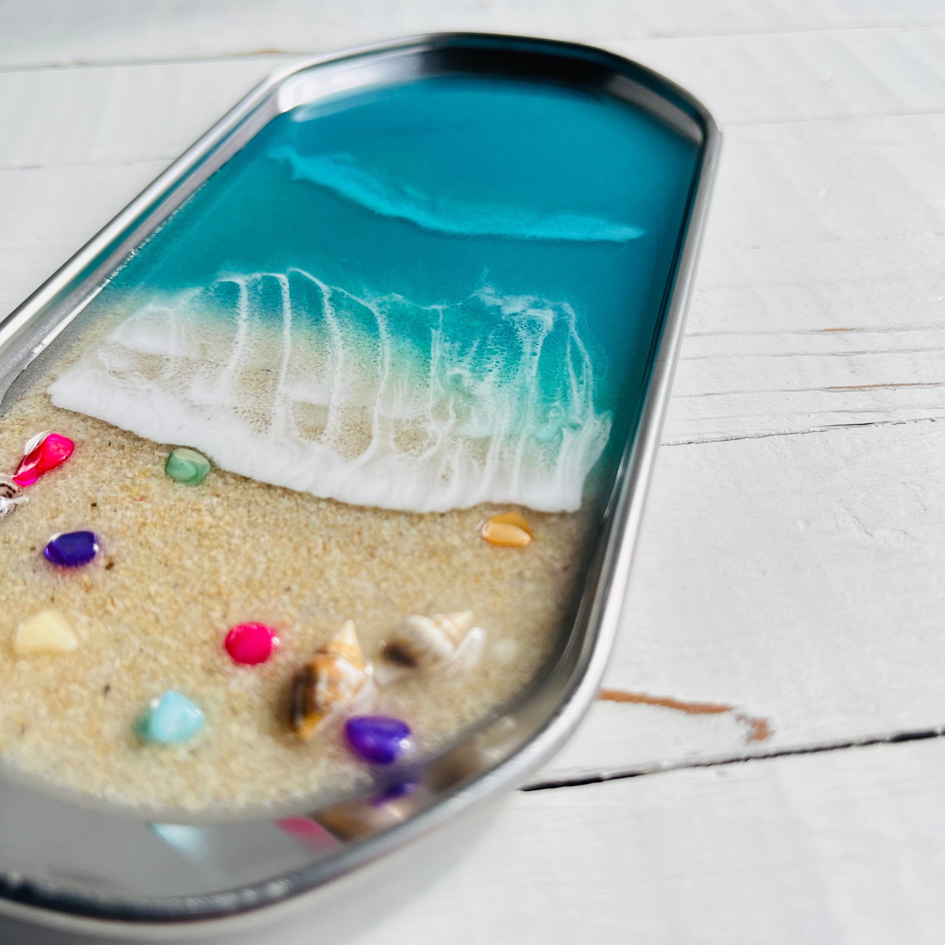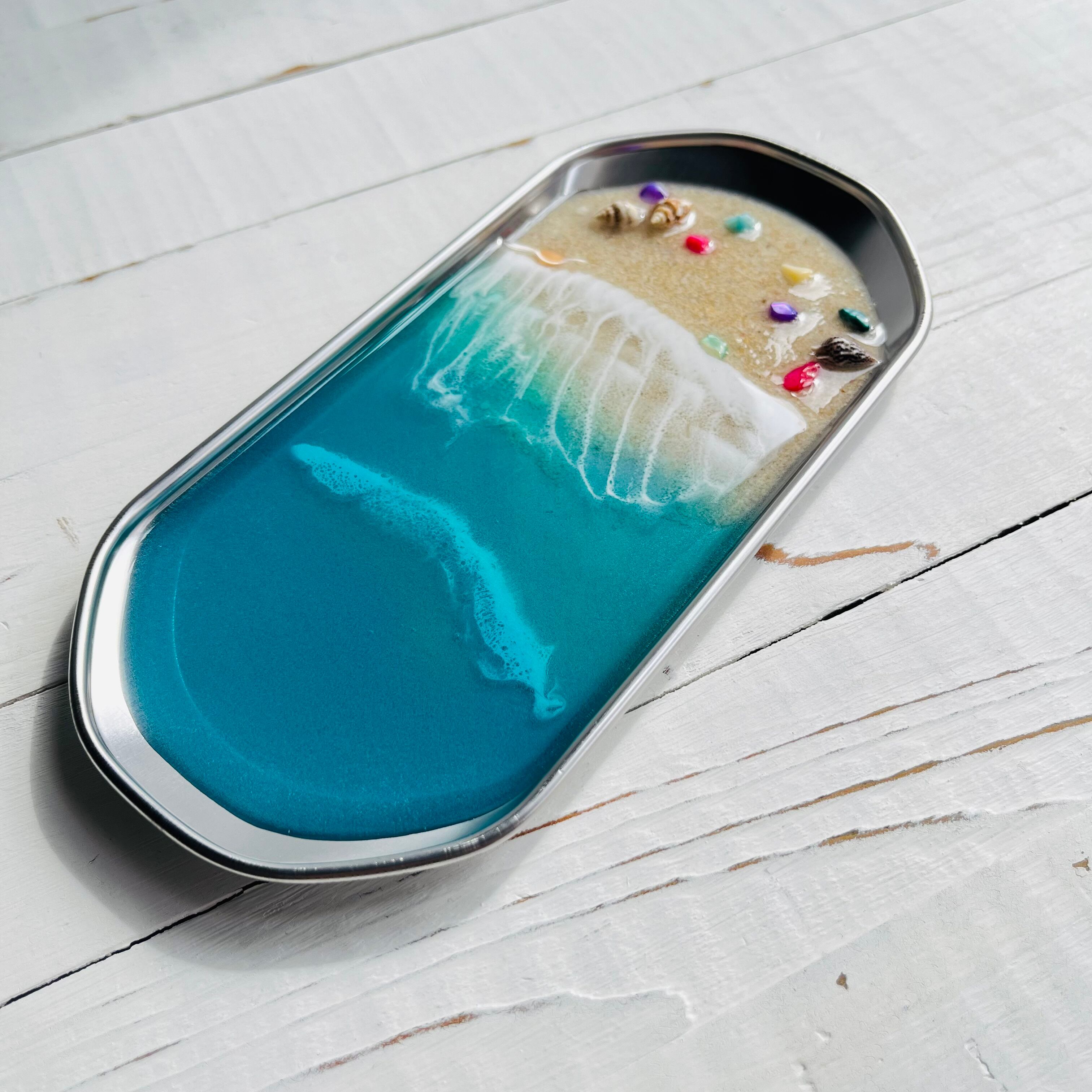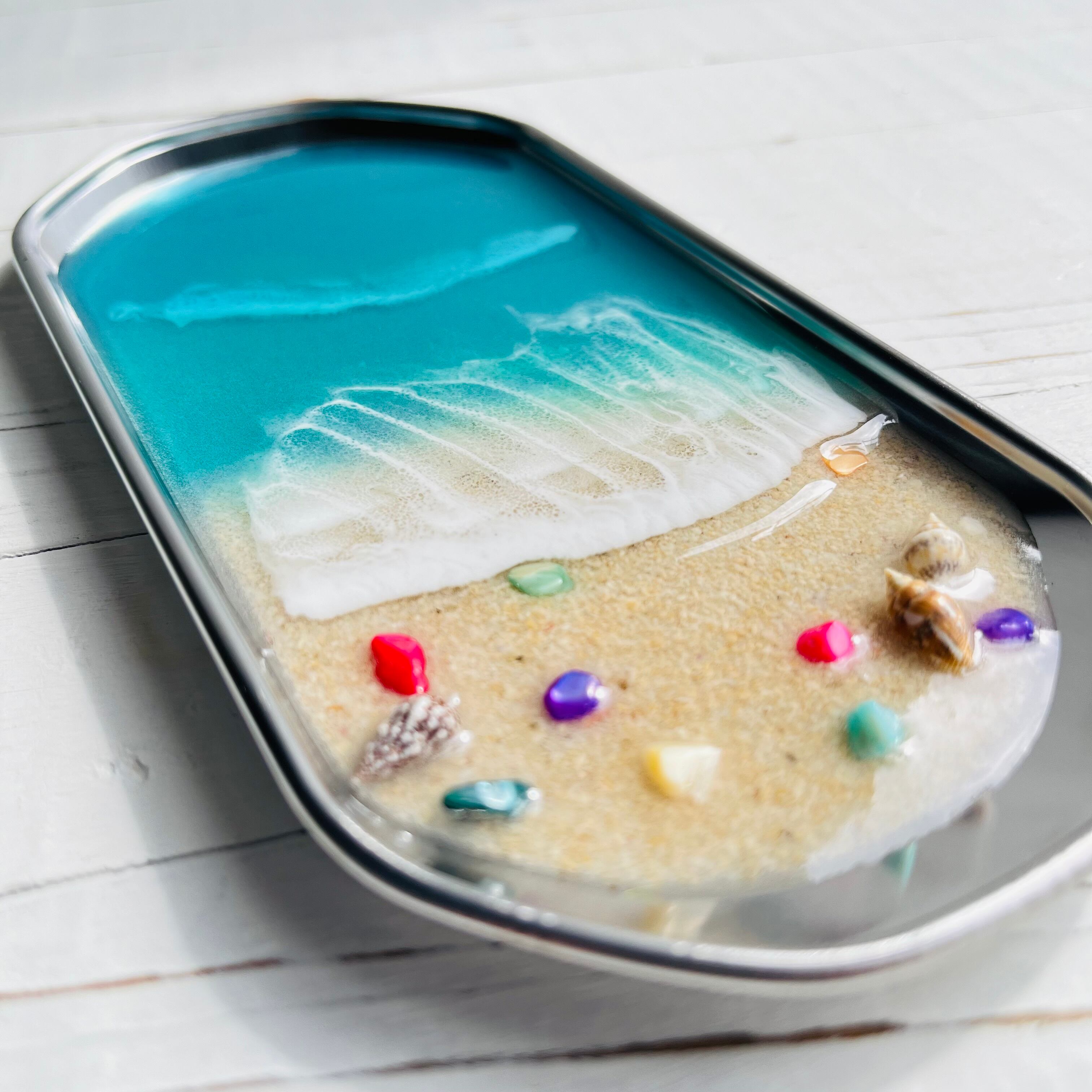 シルバーのトレイの中にエポキシレジンで海をつくりました( •̤ᴗ•̤ )♡