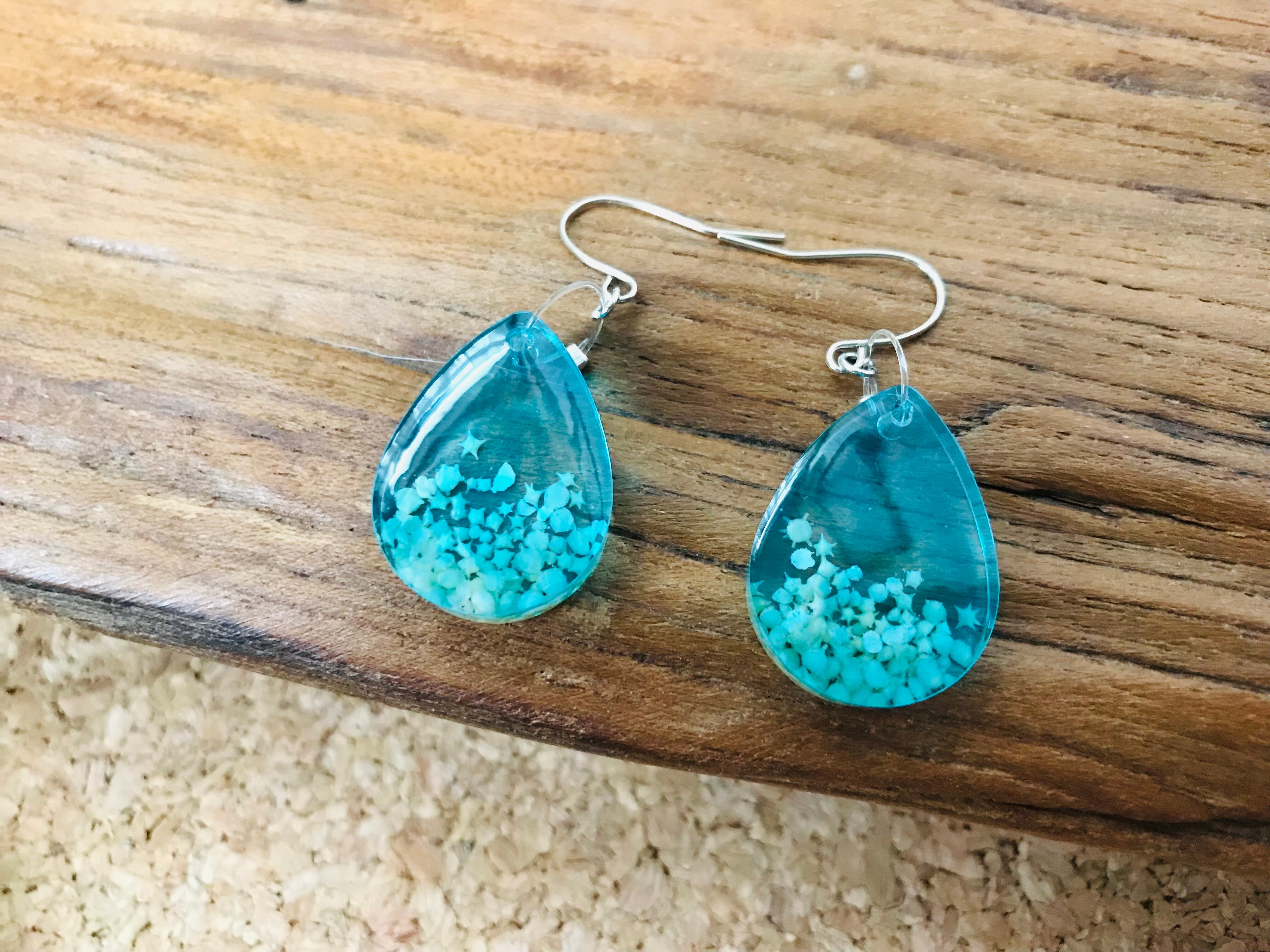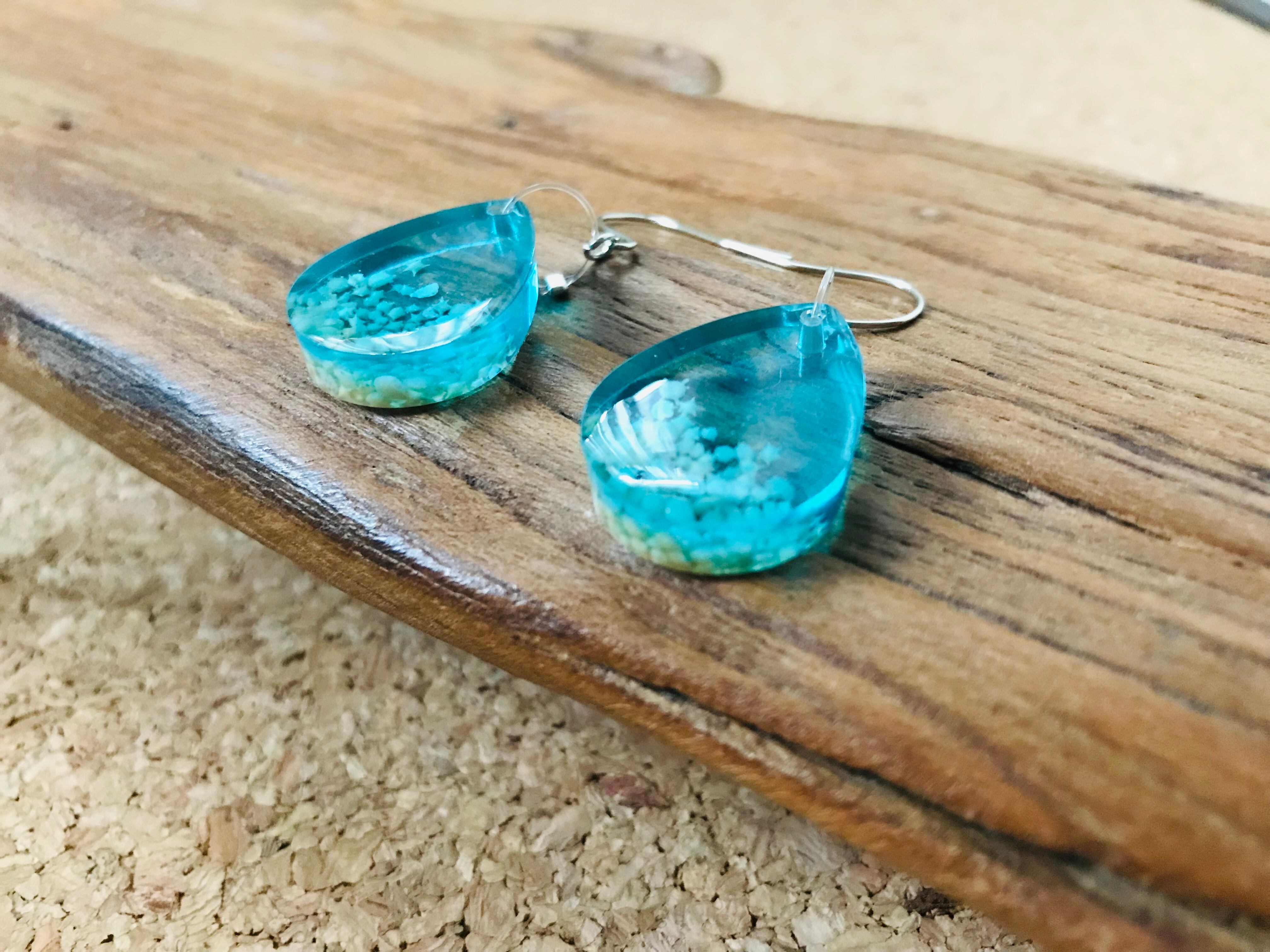星の砂を入れた海のしずくをピアスにしました(o^^o)