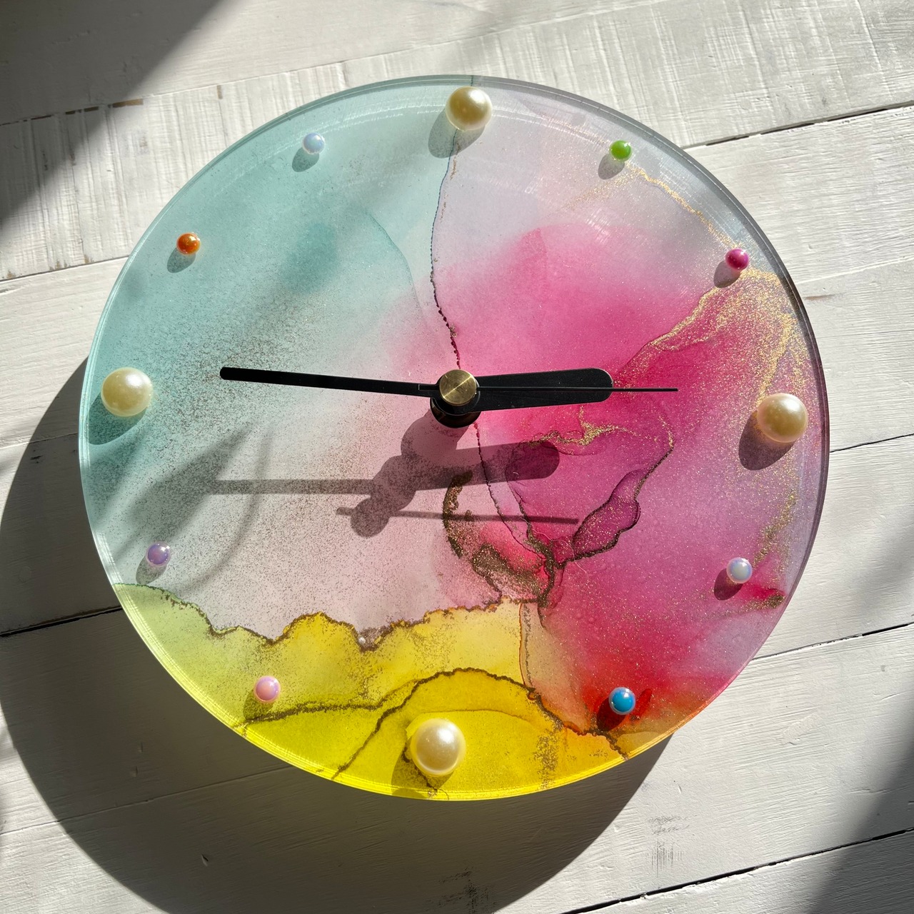 アルコールインクアートはアクリルの中に閉じ込めていますので、日当たりの良いところに置いても色の変化はほぼないと思います❤︎