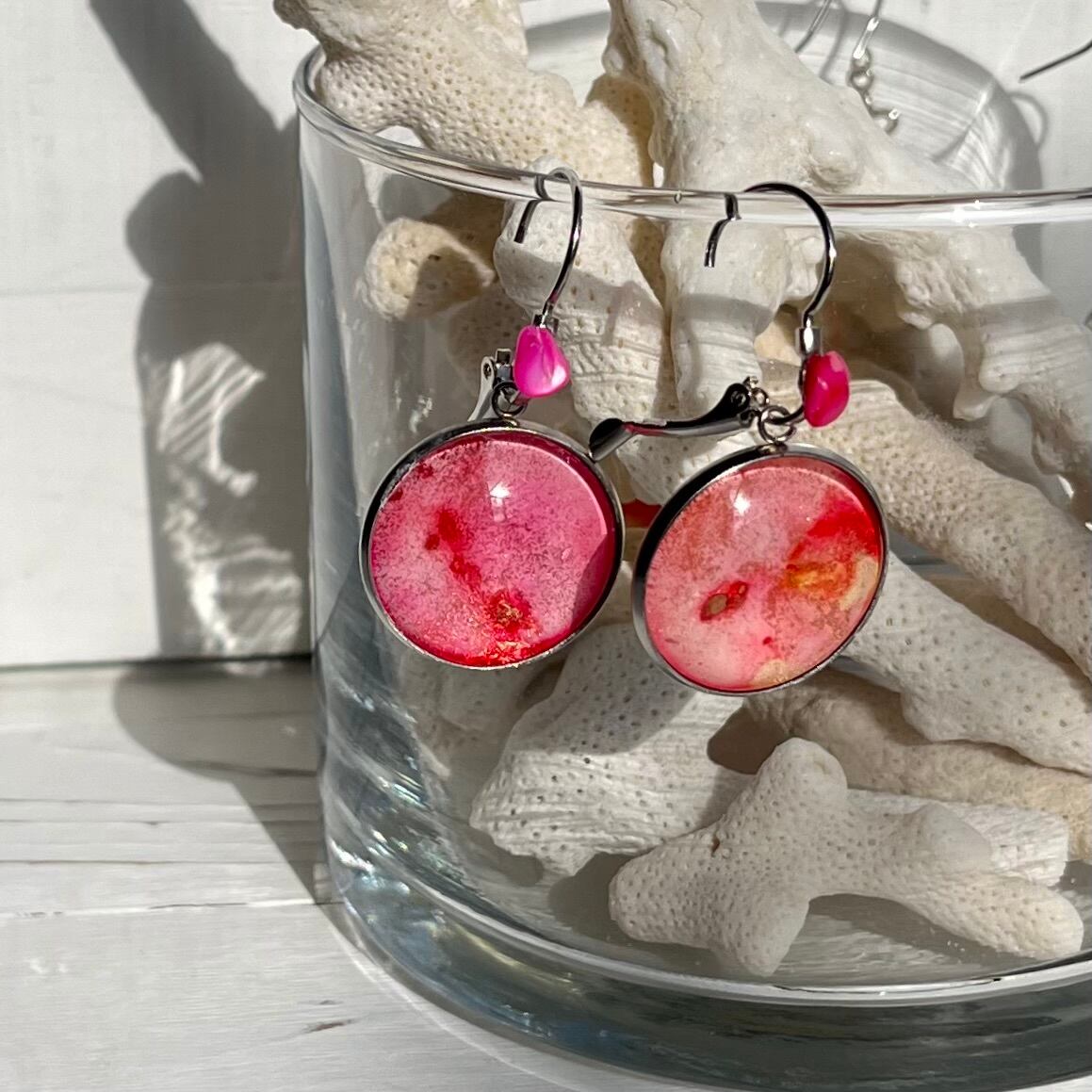 自作のアルコールインクアートから切り取ったピアス ·͜·♡