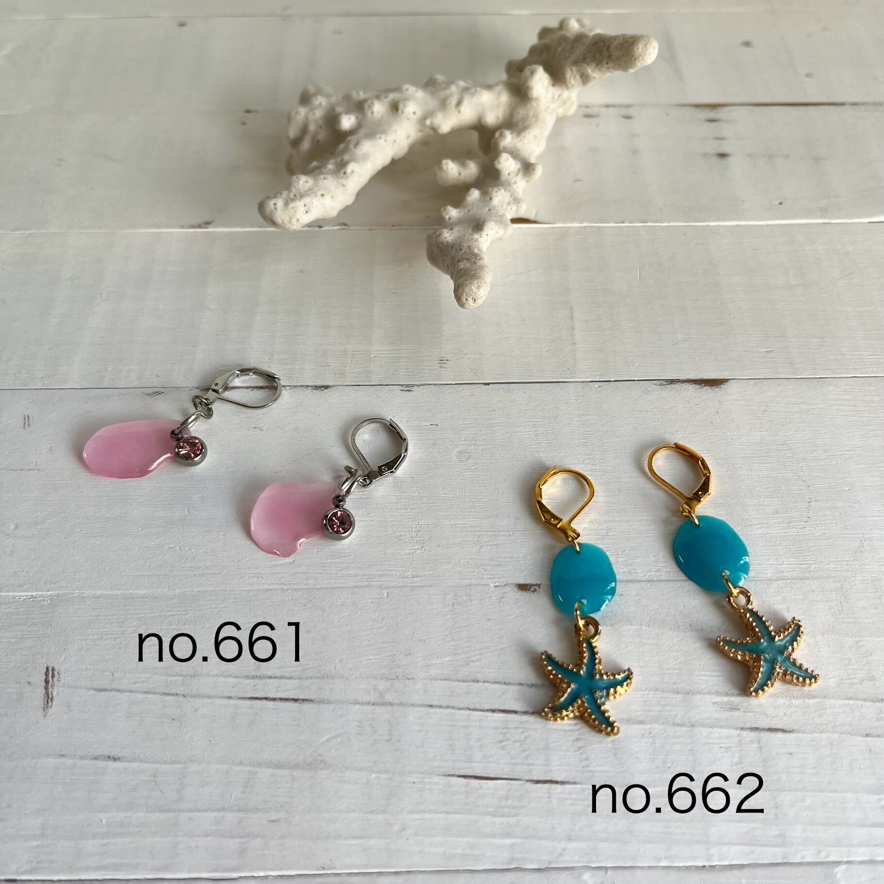 またピアスの方は種類も普通のフック(シリコンの滑り止め付けます)とフレンチフック(落ちにくい輪っかタイプ)も選べるようにしました( ˊᵕˋ*)