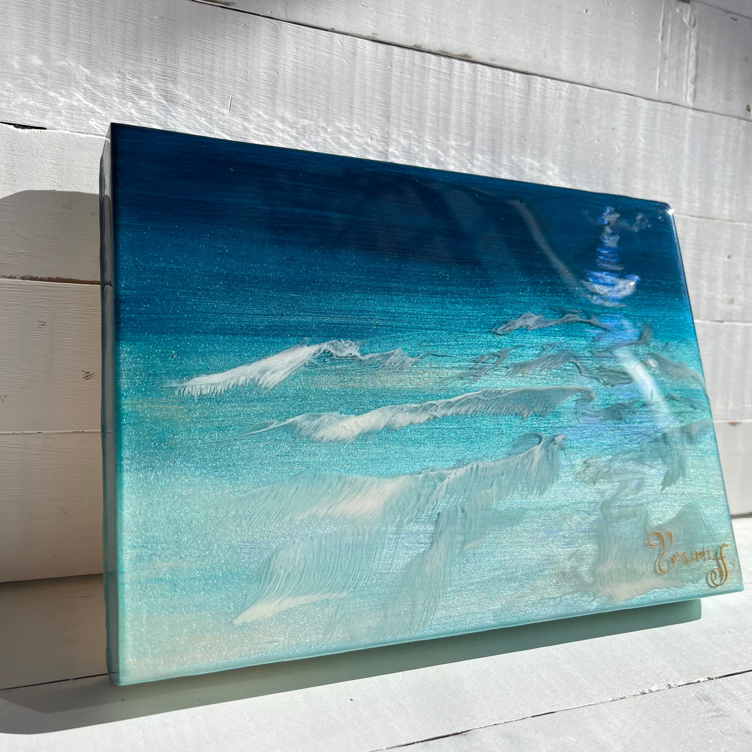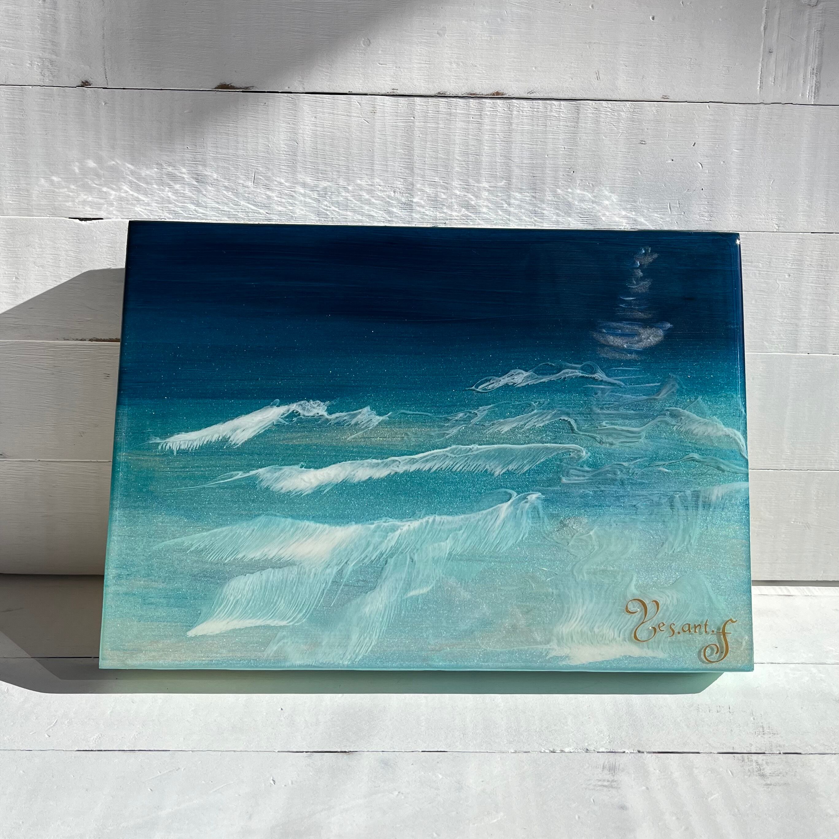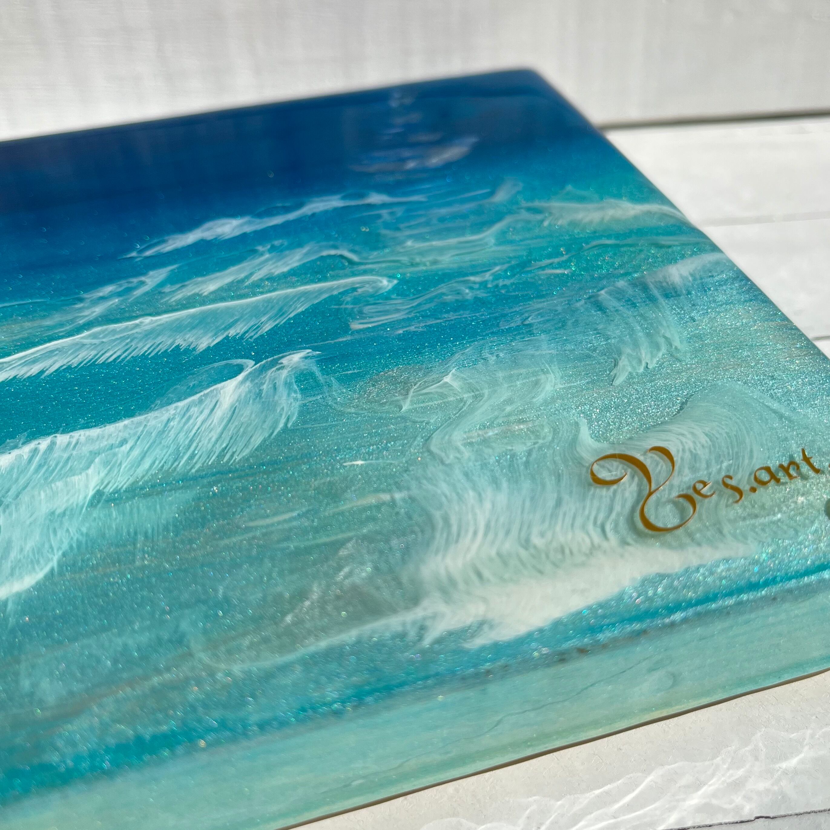 【青い世界】(つらら残し)エポキシレジンアート
