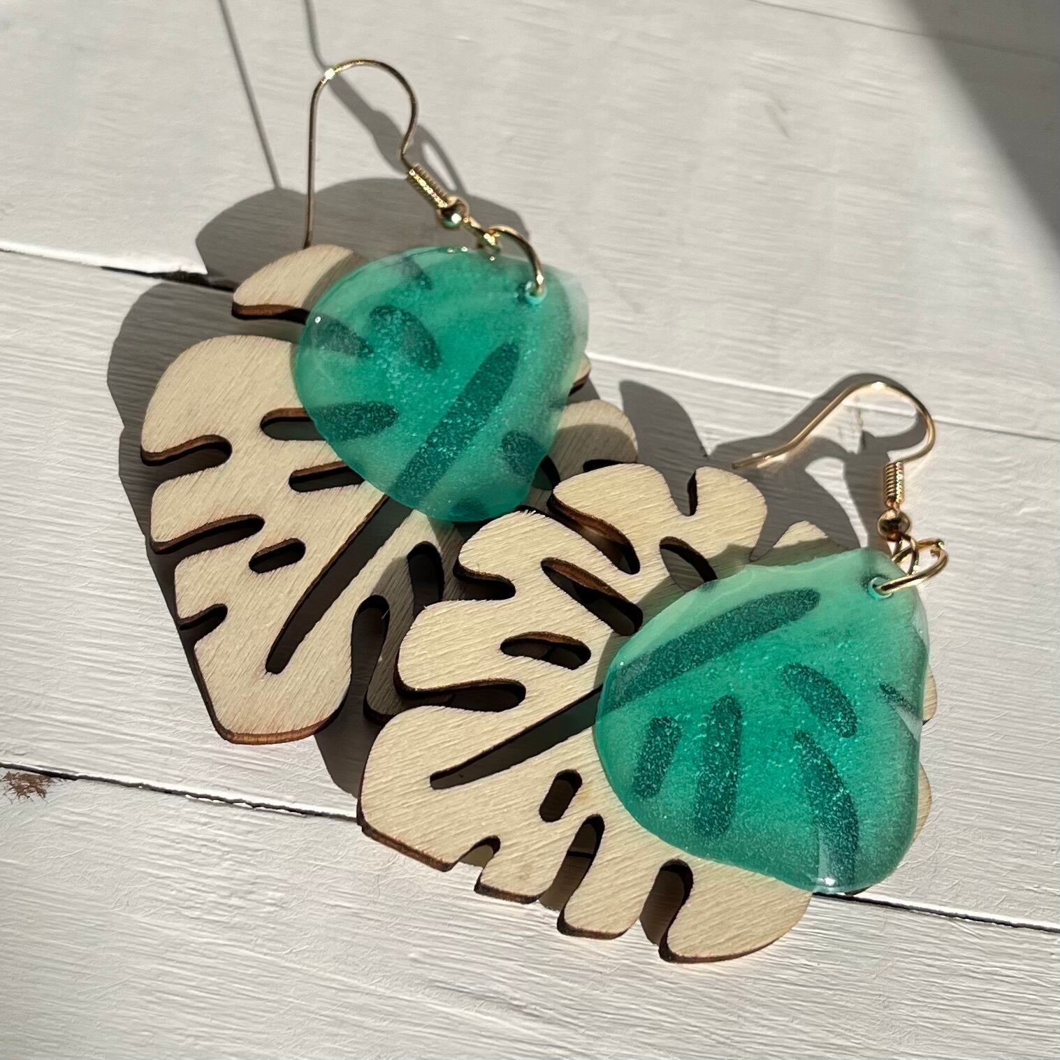 大ぶりモンステラのぽたぽたピアス⭐︎再販⭐︎4種類
